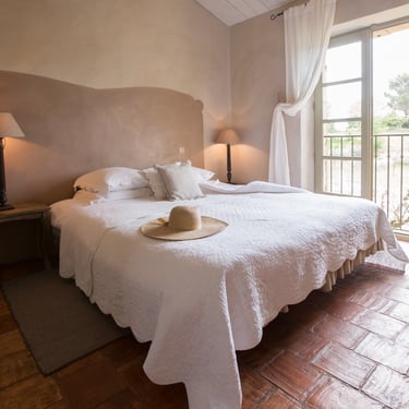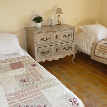 Situé sur le même palier que la chambre 6, cette chambre pour 2 aux saveurs provençales se situe au premier étage, côté ouest avec une vue sur la garrigue et au loin le petit village d’ Aigaliers.