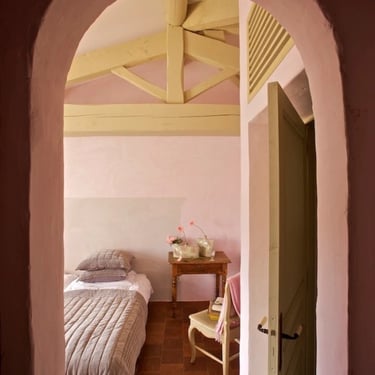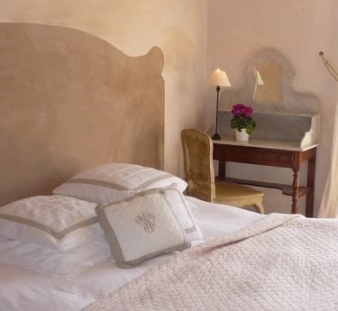 A côté de la chambre 3, pour deux personnes aux pigments Terre de sienne elle se situe au premier étage, côté sud avec vue sur le jardin et piscine californienne.