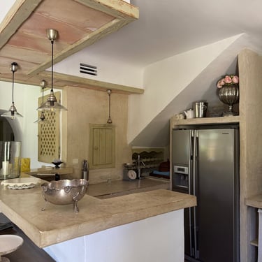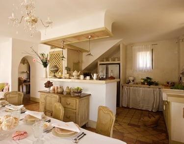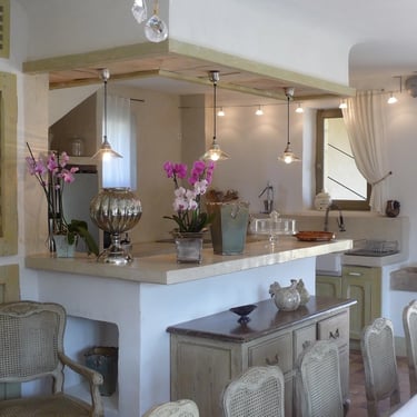 Entre murs lumineux, pierres anciennes et sols en terre cuite, l’intérieur du Mas allie charme provençal et confort moderne.