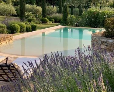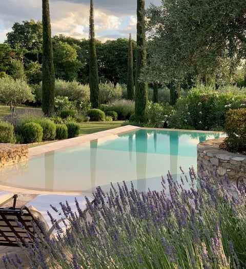 Le Mas Haut : bassin à débordement de 14,5 m chauffé (26–28°C selon la météo)